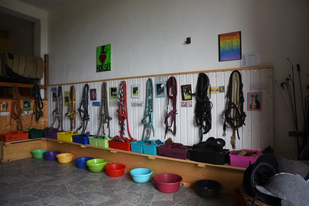 In den Stunden ist neben dem Reiten das Putzen der Pferde ein wichtiger Teil. Schon hier ist
